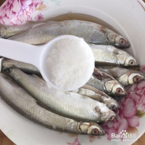 接着往鱼身上加入适量的老酒和盐,腌半个小时。