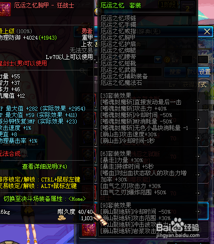 鲁莽套,这个套装+3配合上面一套+6是最好的配置,完美的加强了怒气这个技能。