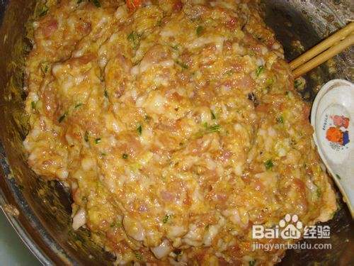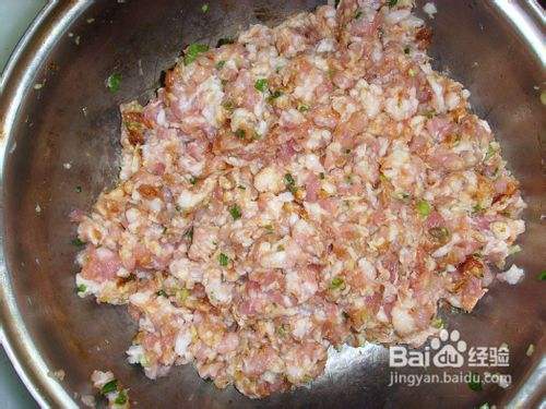 五花肉剁碎,放入葱姜末,白酒和盐。