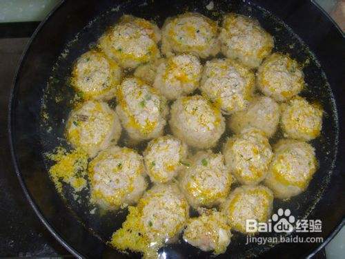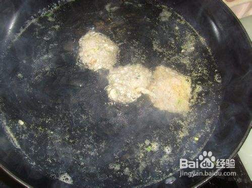 大锅倒入开水,开小火。逐个做出肉圆慢慢放入锅中,锅中一直是中小火。放入适量的盐在汤中。