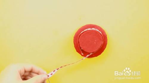再拿出一个晓得环形纸板,把它粘在大的环形纸板上。