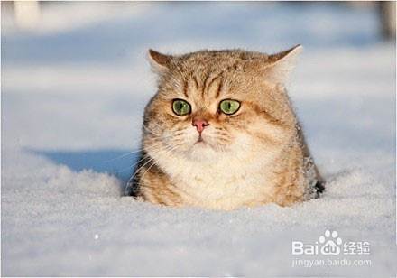 一只胖胖的喵咪在雪地上挖了一个洞,自己钻了进去。