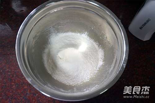 5然后筛入戚风蛋糕粉,拌至无干粉状态。