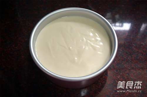 8面糊倒入6寸的圆形活底蛋糕模具中,震荡出大气泡。