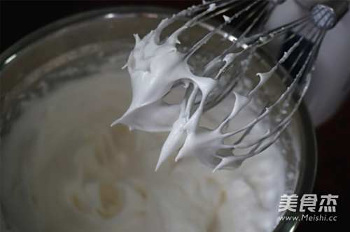 3然后转为中速,打发至中性发泡(倒置容器,蛋白不流出)。
