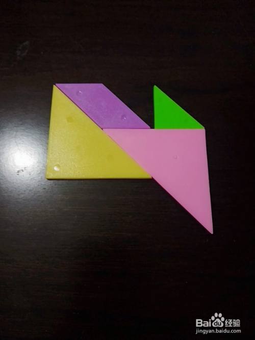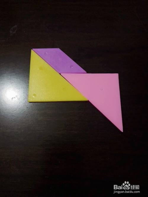拿出一个紫色平行四边形板放在黄色三角形板的上面,如图所示。