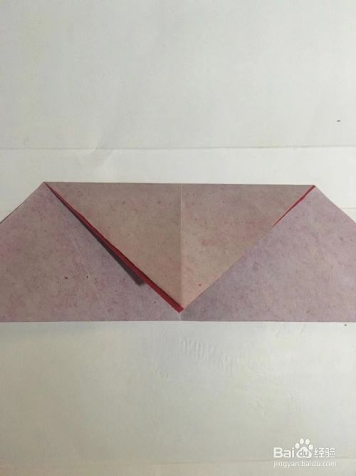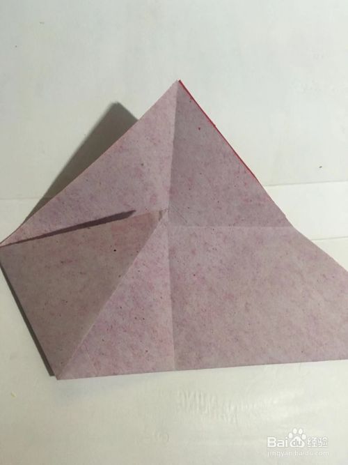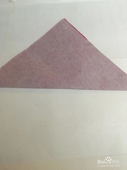 第一步 用一张长X宽都是16厘米的正方形红色彩纸 按图示摆放 然后从下向上对角折叠