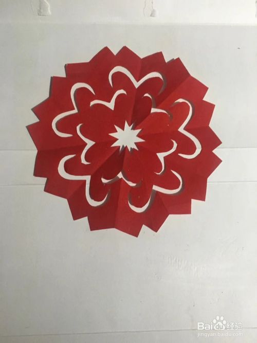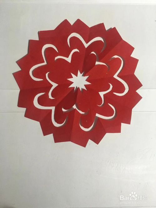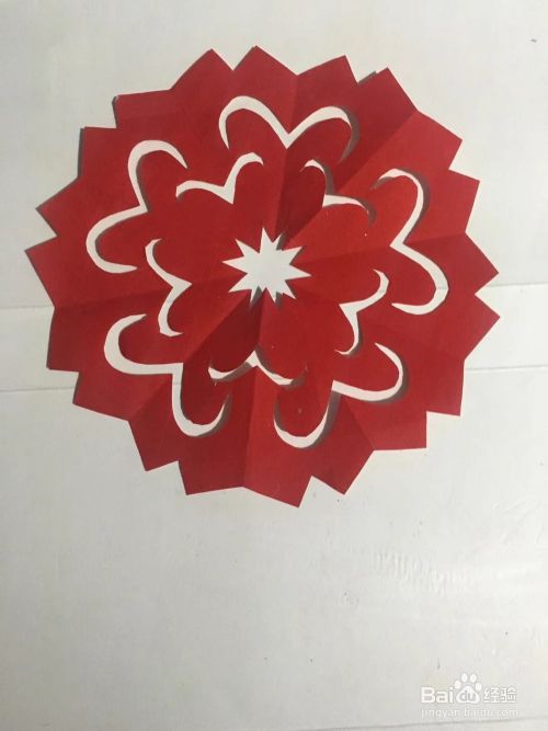 第七步 剪完外围多余的彩纸之后 再剪里面弯曲的部分和花蕊部分 边缘部分等等 剪完之后 展开铺平