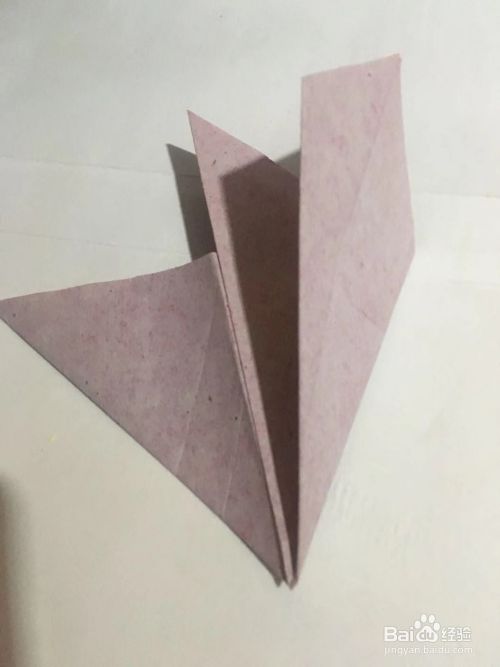 第四步 折好之后 再次取开 拿起右下角向左上第一道折痕上头折叠 然后左边的三角部分向背面折叠 剩下的部分左右对折