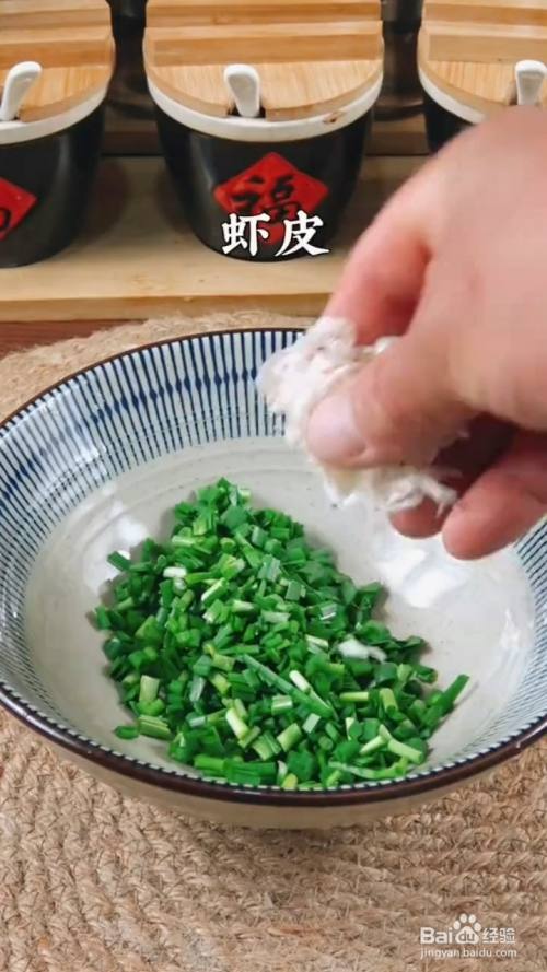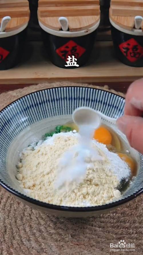 100g韭菜切丁,放入碗中,加入20g虾皮,20块鸡蛋,50g面粉,50g小米面,20g盐,20g白胡椒,30g水
