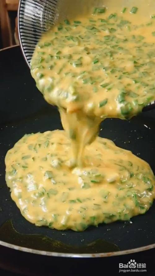 搅拌均匀,起锅烧油,倒入平底锅,摊平,煎至两面金黄即可