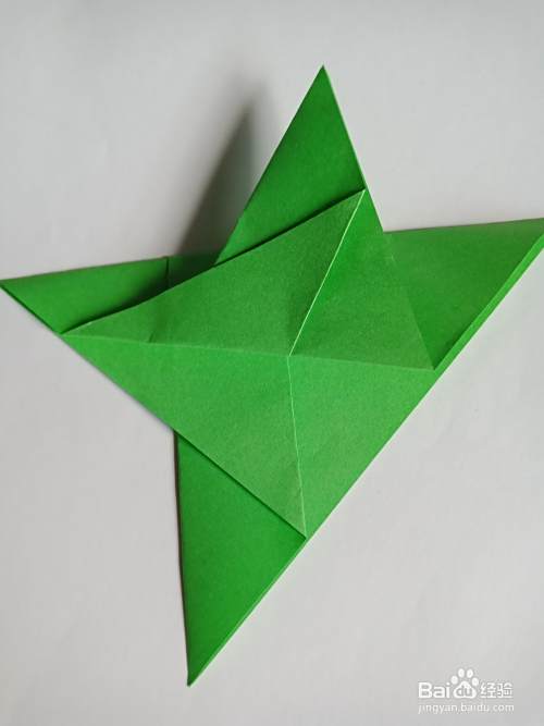 把三角形向中心对折,形成一个小三角形和一个大三角形。(如下图)