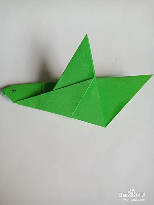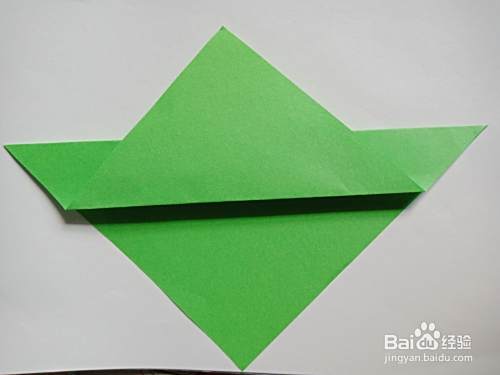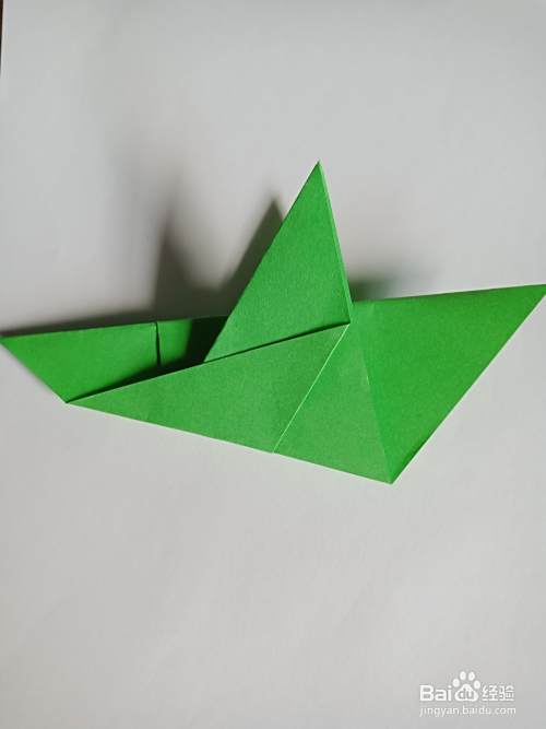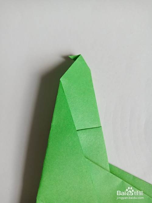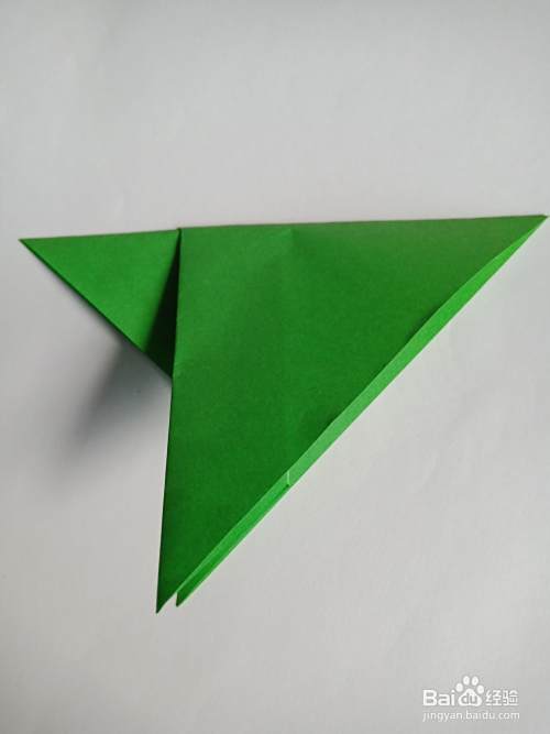 再把大的三角形向上翻,在小三角形的旁边向下斜翻上去。(如下图)
