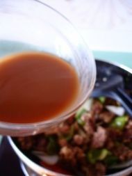 勾兑碗芡,按顺序放 盐+胡椒粉+鸡精+糖+料酒+酱油+香醋+纯白米醋+干淀粉+清水。(要使碗里的淀粉彻底溶解)