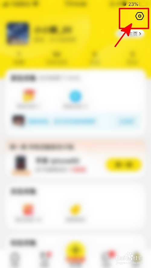 进入闲鱼个人中心后,点击页面右上角的设置按钮。
