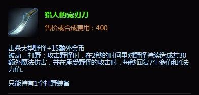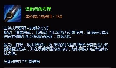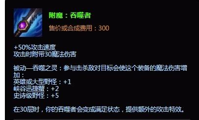 第一个大件推荐是追猎者的刀锋附魔吞噬者,主要是考虑到,出奇葩打野基本上是想自己发育,而自己发育出吞噬者是最好的选择。
