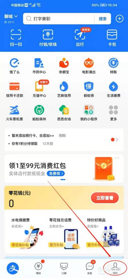 打开支付宝,点击右下角“我的”