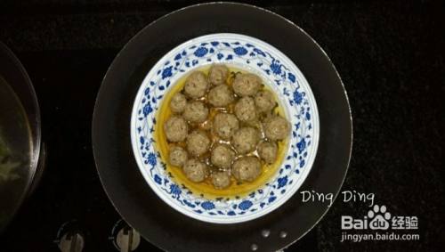 挤满碟后,滴上一些香油,放锅里隔水蒸15分钟即熟,火力为中大火,比中火大一些。<我这要给宝贝吃的,一般都蒸18~20分钟,但肉丸也软嫩软嫩的>