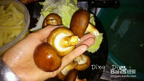 先教暖姥姥选香菇,不知她是不是这样选? 选香菇首选香菇伞要厚厚肉肉的,而且香菇伞未开全的<象我手里中间的伞往里收圆圆的>,其次香菇杆短短肥肥的<一般瘦长的杆很硬>。这样的香菇甜。