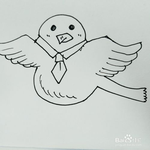 第五步,我们来画卡通小鸟的身体轮廓,还有尾巴部分。