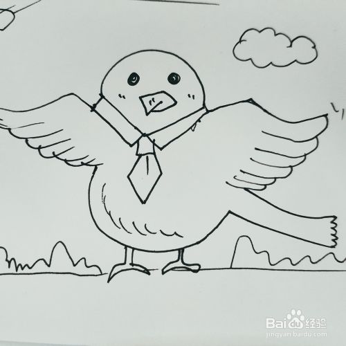 第四步,我们来画卡通小鸟的两边的翅膀。