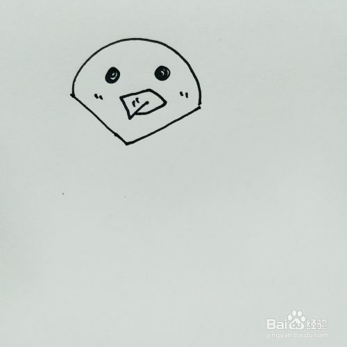 第二步,我们来画卡通小鸟的两只眼睛,和嘴巴。
