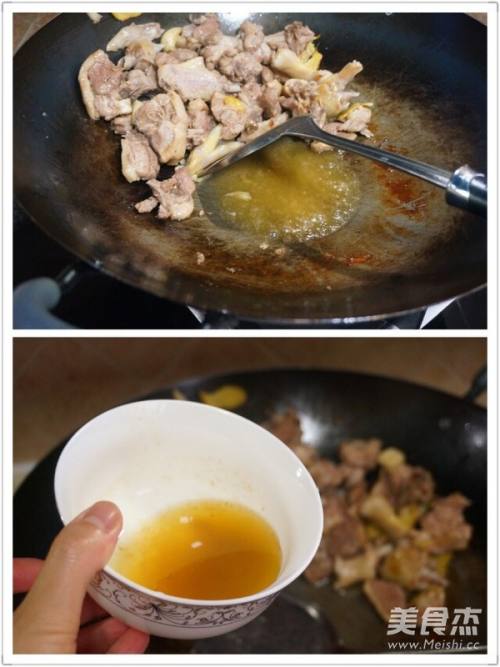 4待鸭肉煸出油后关火,把鸭油倒出,这样煮出来的鸭肉才不腥
