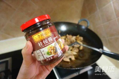 5重新开火后加入少许花生油,加入一大勺柱候酱翻炒