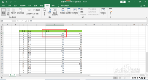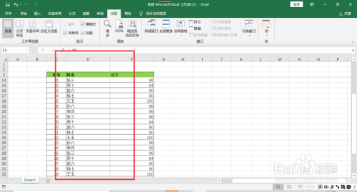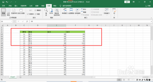 向下或向右滚动鼠标,可以看出表格的标题行,以及单元格所在列左侧的列均已经冻结。
