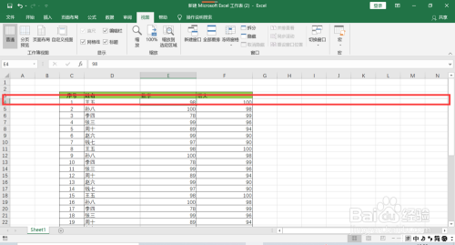 可以看到Excel页面显示一条线,这条线上面的区域就是冻结区域。