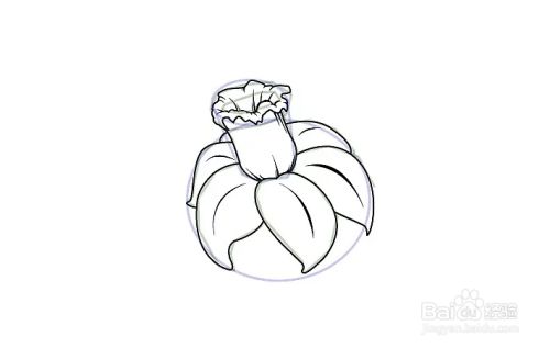 画一个椭圆形,形成花叶的外缘。添加两条平行线并连接底部的平行线,如图所示。