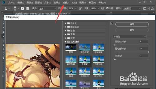 在上方工具栏中选择“捕调滤镜”-“滤镜库”。