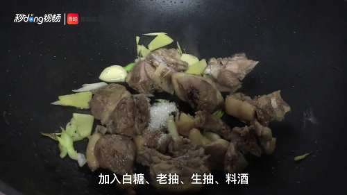 5加入白糖、老抽、生抽、料酒炒至上色。