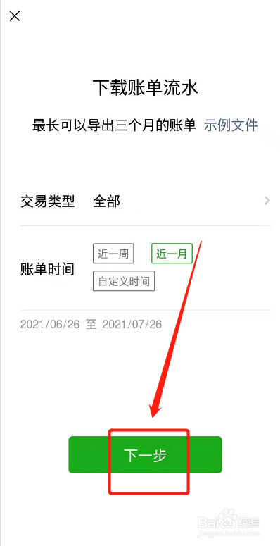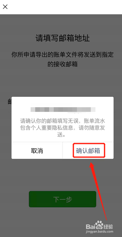 接着我们选择一下账单时间,选择下一步,接着选择邮箱地址,选择好之后再点下一步