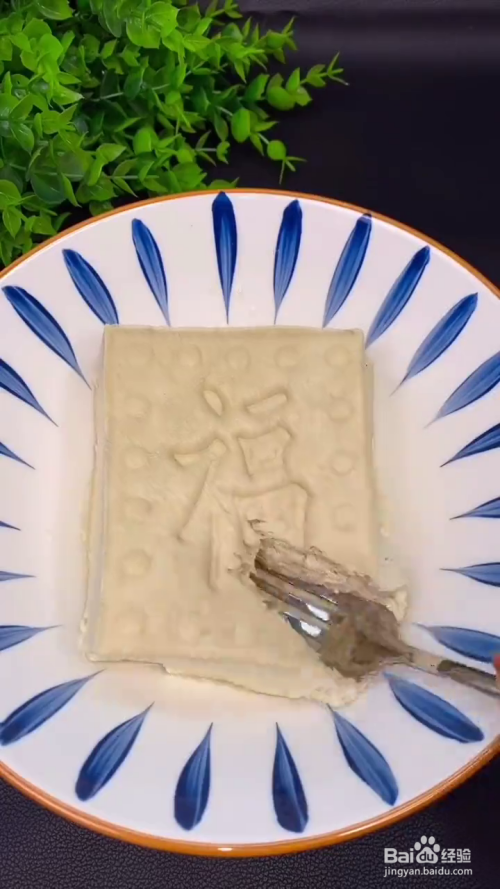 我们将老豆腐碾碎将,加入胡萝卜碎,洋葱碎,黄瓜丁,蛋清搅拌均匀