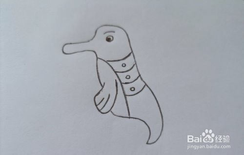 第二步,用铅笔画出海马的肚皮,如图所示。