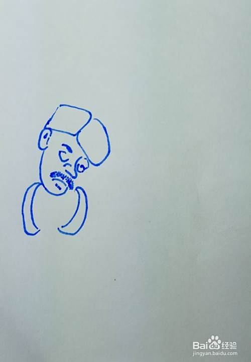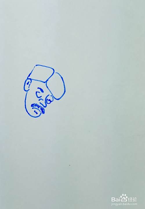 在白纸上用线条和曲线画出光头强的头部轮廓,并画出光头强的五官,胡子和他的帽子。
