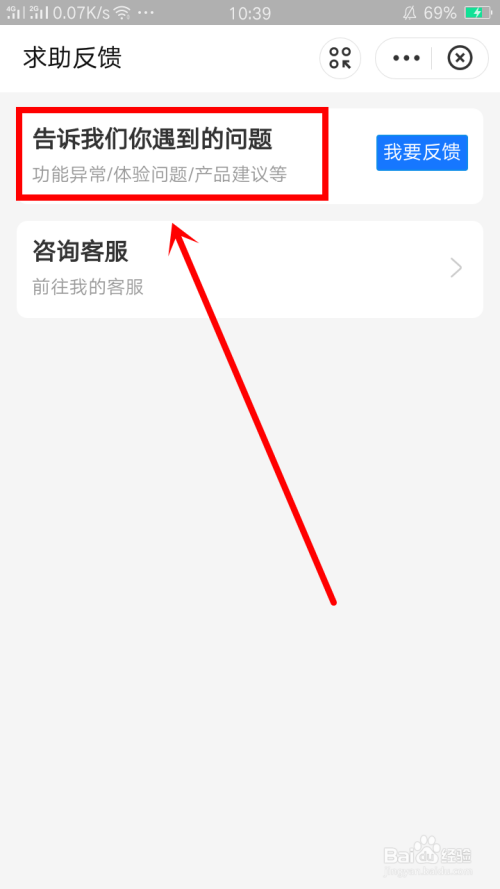 第五步,选择“告诉我们你遇到的问题”,点击进入;