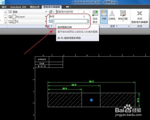 将两个区域全部选中并确认之后,如果发现图案过于密集,可以在“特性”板块对图案填充的比例进行设置,比例设置的值越大,图案就越稀疏,同时还可以在角度选项中设置图案的角度。
