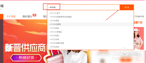 在电脑上打开浏览器,进入批发网站,在搜索框内输入一件代发,并进行搜索。