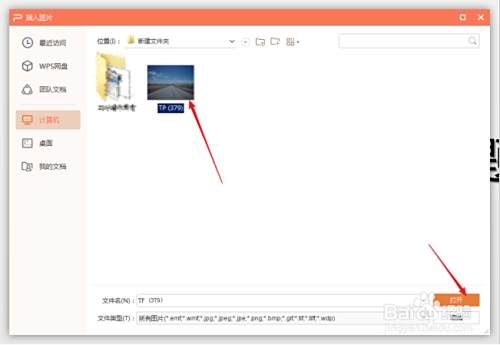 在打开的窗口中找到图片所在的文件夹,找到并点击图片,再点击【打开】。