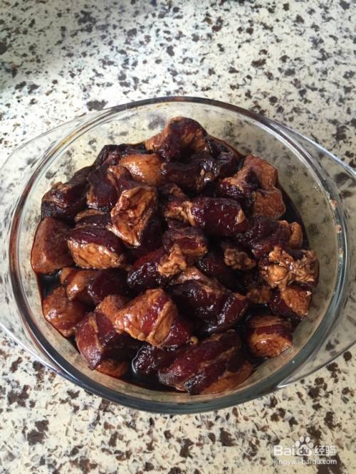 五花肉去皮剔骨,切成10克左右的小块。放入黄酒、老抽、盐、白糖、味精拌匀,放冰箱冷藏腌制2小时以上,能隔夜就更好了。