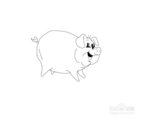 画好猪的头部之后,我们再画出猪的身体,然后再在身体的后面再画出猪的尾巴,如图所示: