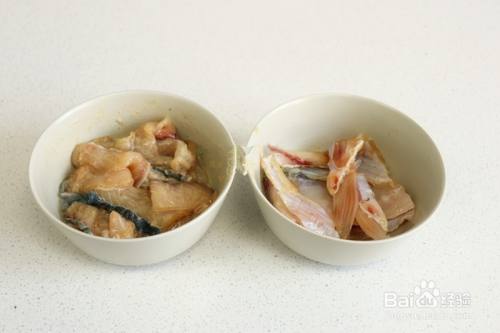 食材准备工作,草鱼清洗干净,去头去尾巴,去骨头,切薄片,倒入腌肉调料包,一勺冷水,搅拌均匀腌制8分钟左右。骨头当盐、花生油、搅拌均匀。大蒜、生姜、香葱也分别清洗干净准备好。