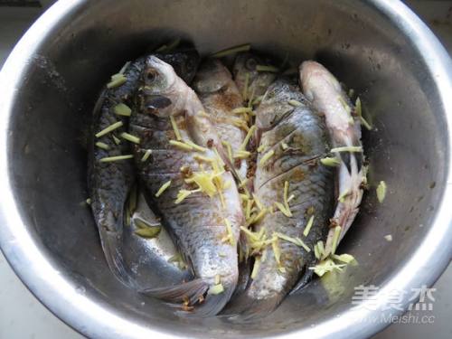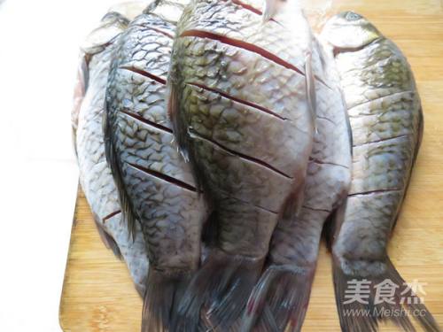 1鲫鱼去鳞去内脏和鱼鳃冲洗干净,两面在鱼身上切几刀