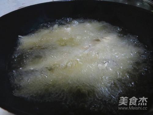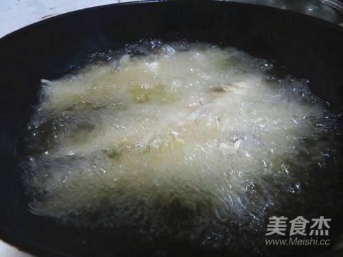 5锅中加500克油烧至5成热后放入鲫鱼炸至两面金黄捞出