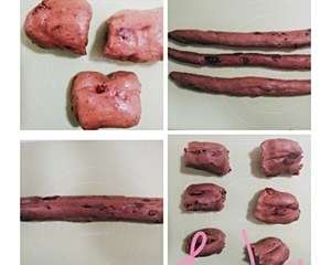 整形: 1.分为两份每份分3个小面团,密封松弛5分钟。 2.每个小面团揉成长条 3.三个长条摞在一起 4.用手直接揪成6个面剂,立起来不用特意整形。