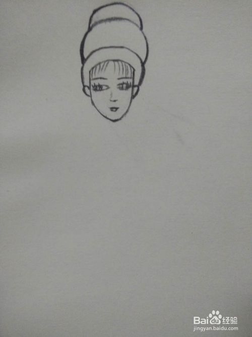 首先用铅笔在画纸上画出月亮公主的脸及五官,眉毛细细的,眼睛大大的带有长长的睫毛,注意眼睛要留出高亮部分。