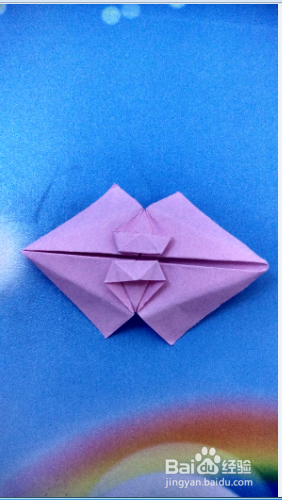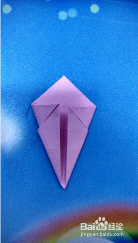 第二步就是把第一步的得到的另两边也向中间对折,然后把中间那个地方的地方竖起来,如下图。