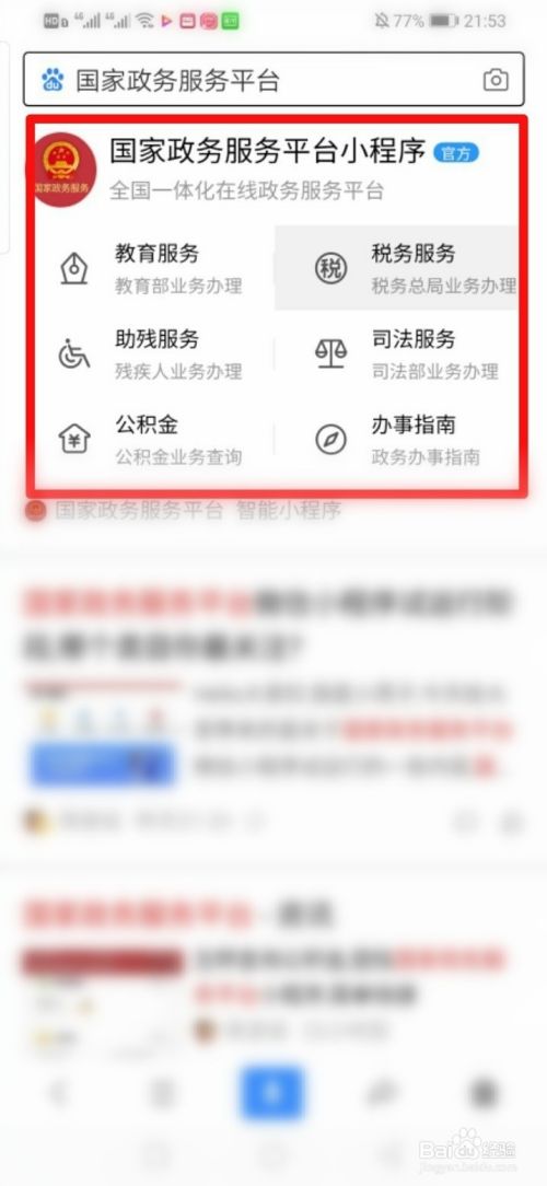 接着,在出现的页面找到国家政务服务平台提供的公积金查询小程序,点击进入即可。
